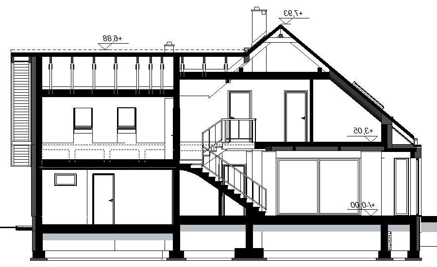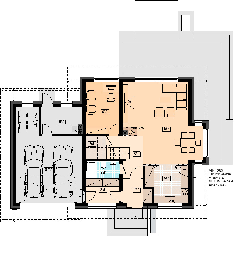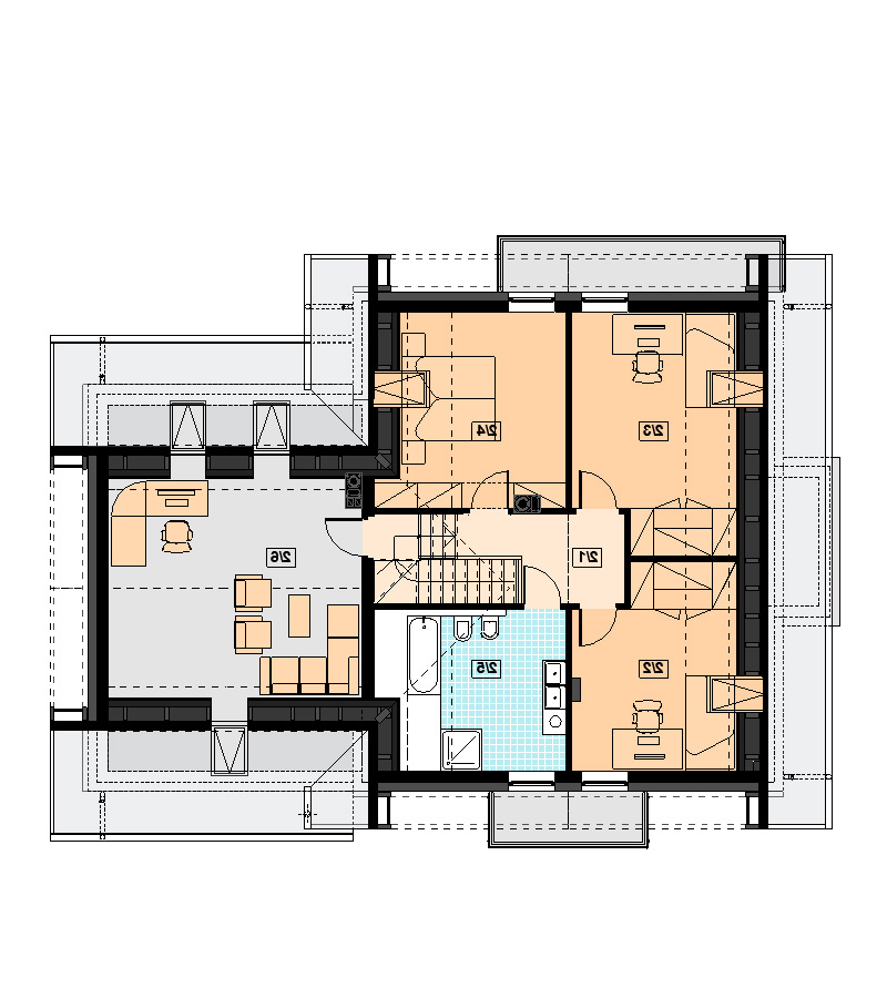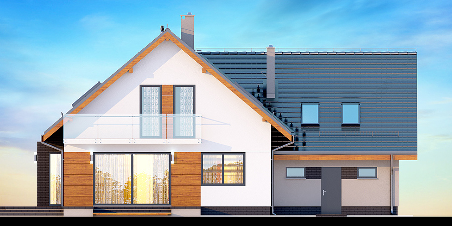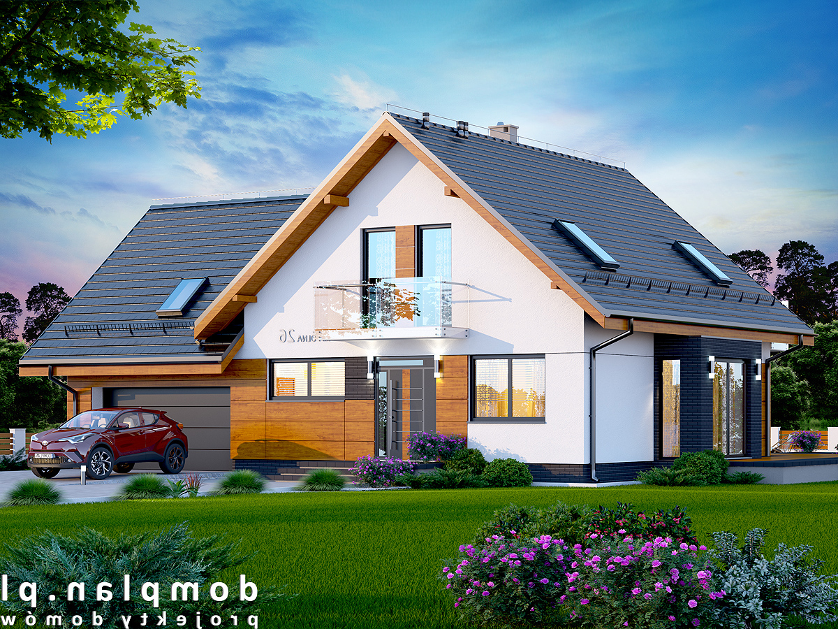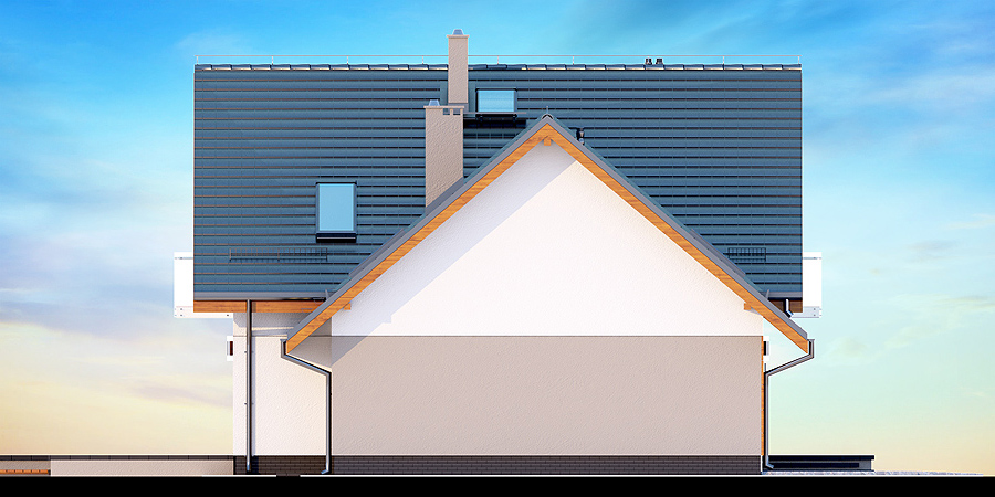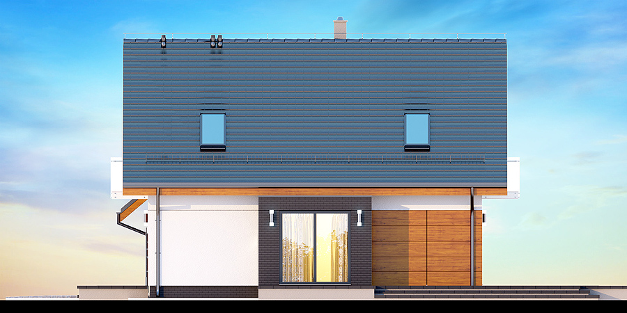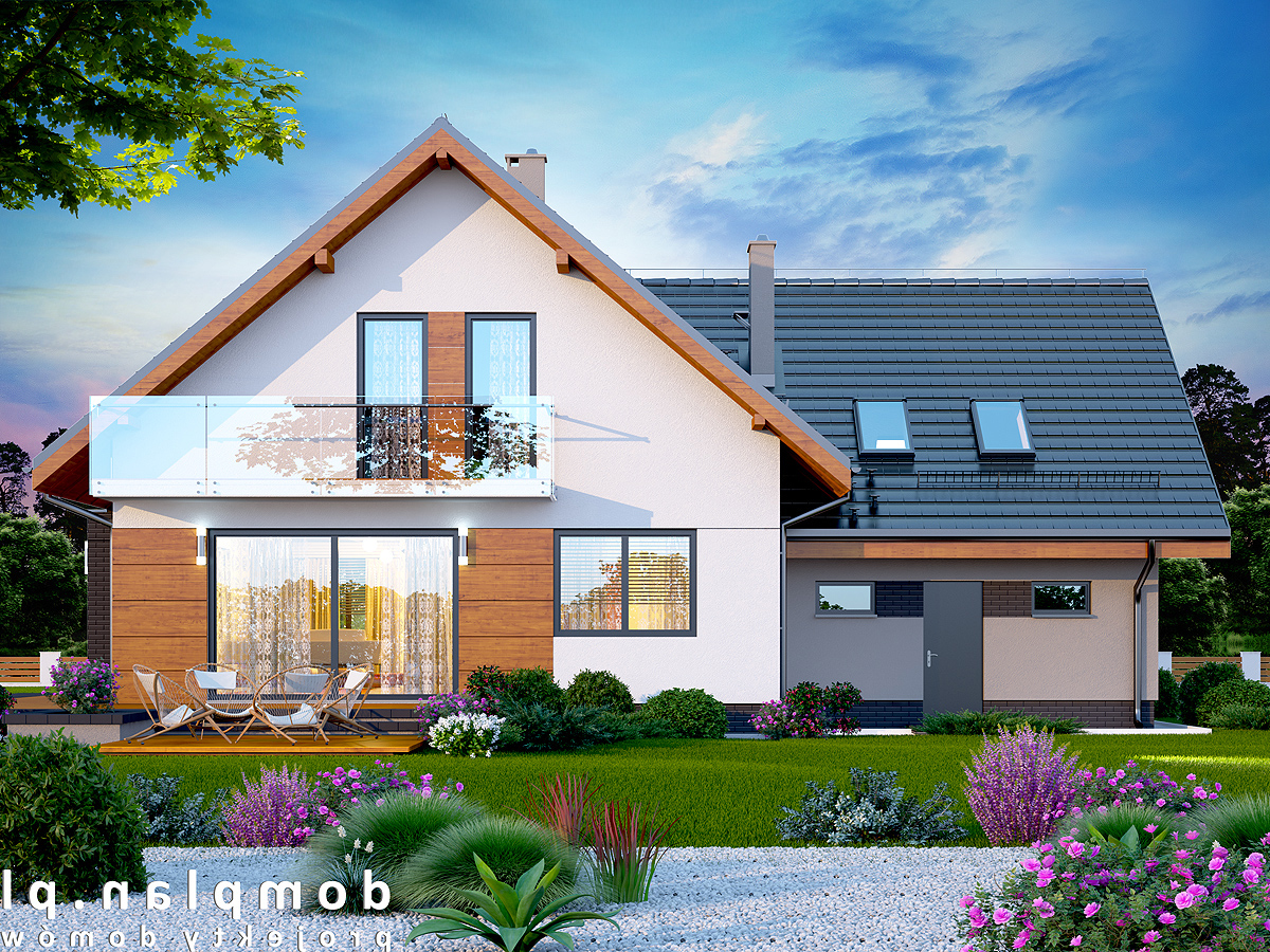 ALION 2M Z WYKUSZEM to bardzo funkcjonalny i atrakcyjny wizualnie dom dla 3-6 osobowej rodziny o eleganckiej formie i współczesnej estetyce oraz prostej, taniej, dokładnie przemyślanej konstrukcji. Jest to budynek parterowy z użytkowym poddaszem, niepodpiwniczony, z garażem dwustanowiskowym. Bryła domu jest tradycyjna, zaprojektowana z najwyższą dbałością o proporcje i funkcjonalność. Na parterze budynku zaprojektowana została przestronna i wygodna strefa dzienna składająca się z kuchni, jadalni ze słonecznym wykuszem oraz salonu otwartego na taras i ogród. Kuchnia w zależności od potrzeb może być zamykana, np. drzwiami przesuwnymi lub otwarta, stanowiąc jedną strefę wraz z jadalnią i salonem. Dzięki doświetleniu strefy dziennej zarówno od strony ogrodu jak i z boku- od strony jadalni, dom nadaje się na każdą działkę, zarówno z wjazdem od północy jak i od południa, wschodu bądź zachodu. Uzupełnieniem kuchni jest pojemna spiżarka. Na parterze zaprojektowano również pokój, który może służyć jako pokój gościnny, gabinet czy pokój najstarszego członka rodziny, łazienkę, garderobę, która może też pełnić funkcję pomieszczenia gospodarczego oraz garaż i kotłownię dostępną z garażu z wyjściem na ogród dzięki czemu może ona stanowić też miejsce składowania narzędzi ogrodowych. W wiatrołapie przewidziano miejsce na pojemną szafę wnękową. Na poddaszu znalazły się trzy wygodne pokoje oraz funkcjonalna łazienka z wanną i kabiną prysznicową oraz pralką. Strych dostępny jest z półpiętra, może on być przeznaczony na dodatkowy pokój, garderobę, pralnię, siłownię, saunę czy salę z kinem domowym. Może się w nim znaleźć np. sala do gry w bilard z barkiem. Strych może zostać też podzielony na kilka pomieszczeń o różnych funkcjach. W projektowaniu budynku ALION 2M Z WYKUSZEM szczególną uwagę zwrócono na atrakcyjny, nowoczesny wygląd zewnętrzny, proporcjonalność bryły budynku, odpowiednie doświetlenie i funkcjonalne rozplanowanie pomieszczeń przy zachowaniu prostoty konstrukcji oraz zwartości bryły domu. Dom zaprojektowano jako energooszczędny. Dostępne są również inne wersje projektu: ALION - z garażem jednostanowiskowym, ALION 2M, ALION MAŁY, ALION MAŁY 2M.