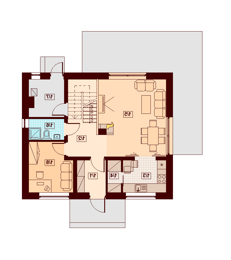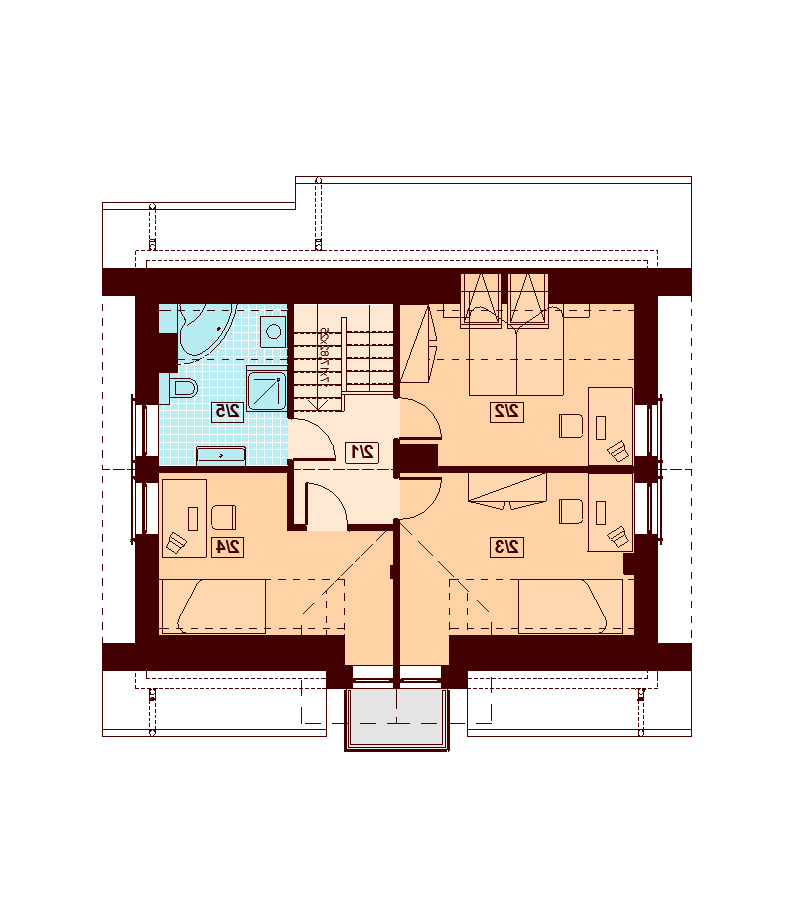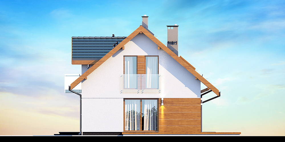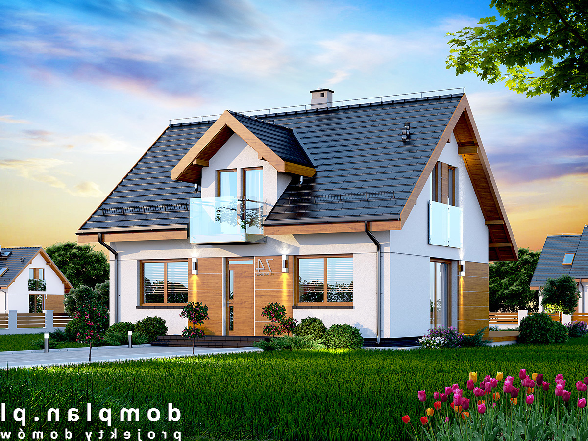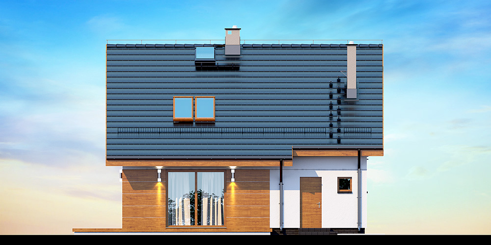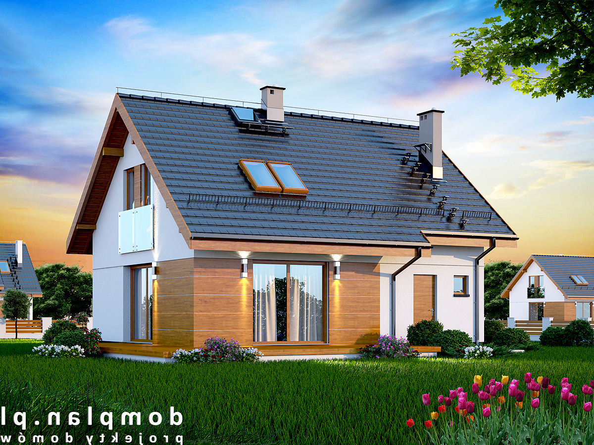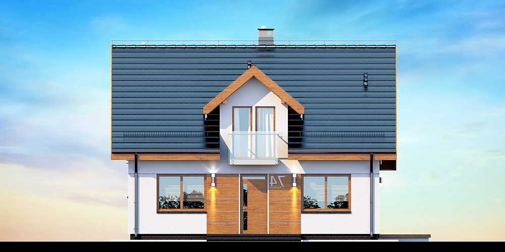 Armanda XS to funkcjonalny, niewielki, piękny dom o prostej i taniej, dokładnie przemyślanej konstrukcji, przeznaczony dla 3-6 osobowej rodziny, o eleganckiej formie i współczesnej, subtelnej estetyce. Jest to budynek parterowy z użytkowym poddaszem, niepodpiwniczony. Na parterze zlokalizowana jest obszerna strefa dzienna składająca się z kuchni (która w zależności od potrzeb może być zamykana lub otwarta) jadalni oraz salonu otwartego na taras i ogród. Uzupełnieniem kuchni jest pojemna spiżarnia. Schody w holu w zależności od potrzeb mogą być otwarte na salon powiększając w ten sposób przestrzeń dzienną i stanowiąc ciekawy element architektoniczny, mogą też być odizolowane ścianką działową od salonu. Dzięki doświetleniu strefy dziennej zarówno od strony ogrodu jak i z boku dom nadaje się na każdą działkę, zarówno z wjazdem od północy jak i od południa, wschodu bądź zachodu. Dodatkowo na parterze zaprojektowano pokój który może służyć jako pokój gościnny bądź gabinet, łazienkę oraz pomieszczenie gospodarcze. W wiatrołapie przewidziano miejsce na dużą szafę wnękową. Na poddaszu zaprojektowano trzy pokoje oraz wygodną łazienkę. Architektura domu to połączenie tradycji z nowoczesnością oraz elegancji z dbałością o proporcje, estetykę i funkcjonalność. Dom zaprojektowano jako energooszczędny. Dostępna również wersja projektu bez lukarny od strony elewacji frontowej (projekt Armanda XS BIS) oraz większe wersje domu, projekty: Armanda Mała BIS, Armanda Mała, Armanda, Armanda BIS, Belinda.