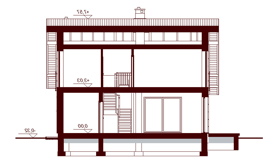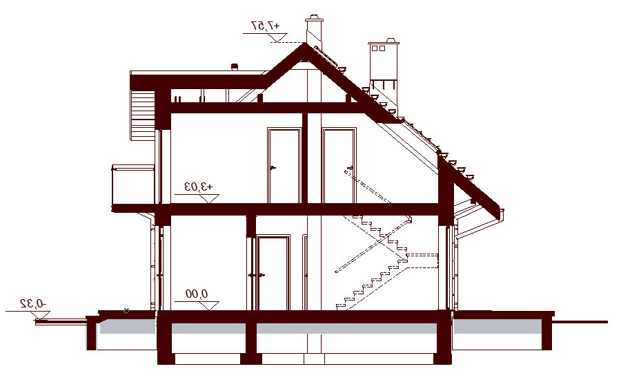 Ściany zewnętrzne i wewnętrzne nośne z betonu komórkowego (24cm), docieplone styropianem 20cm. Ścianki wewnętrze działowe na parterze z bloczków, na poddaszu z płyt GK bądź z bloczków. Ściany fundamentowe z bloczków betonowych. Strop gęstożebrowy Teriva. Wszystkie technologie można zmienić na etapie adaptacji.