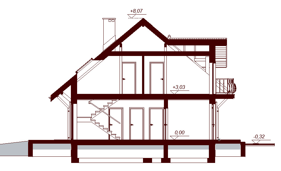 Ściany zewnętrzne i wewnętrzne nośne z bloczków Ytong, docieplone. Ścianki wewnętrze działowe na parterze z bloczków, na poddaszu z płyt GK bądź murowane. Ściany fundamentowe z bloczków betonowych. Strop gęstożebrowy Teriva. Wszystkie technologie można zmienić na etapie adaptacji.