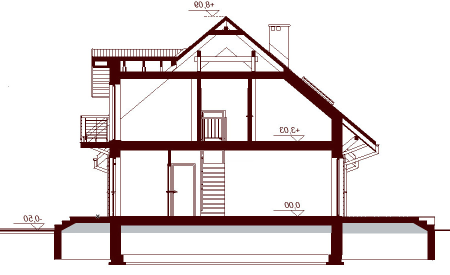 Ściany zewnętrzne i wewnętrzne nośne z bloczków Ytong, docieplone 18cm styropianu. Ścianki wewnętrze działowe na parterze z bloczków Silka, na poddaszu z płyt GK bądź murowane. Ściany fundamentowe z bloczków betonowych. Strop gęstożebrowy Teriva. Schody wewnętrzne żelbetowe. Wszystkie technologie można zmienić na etapie adaptacji.