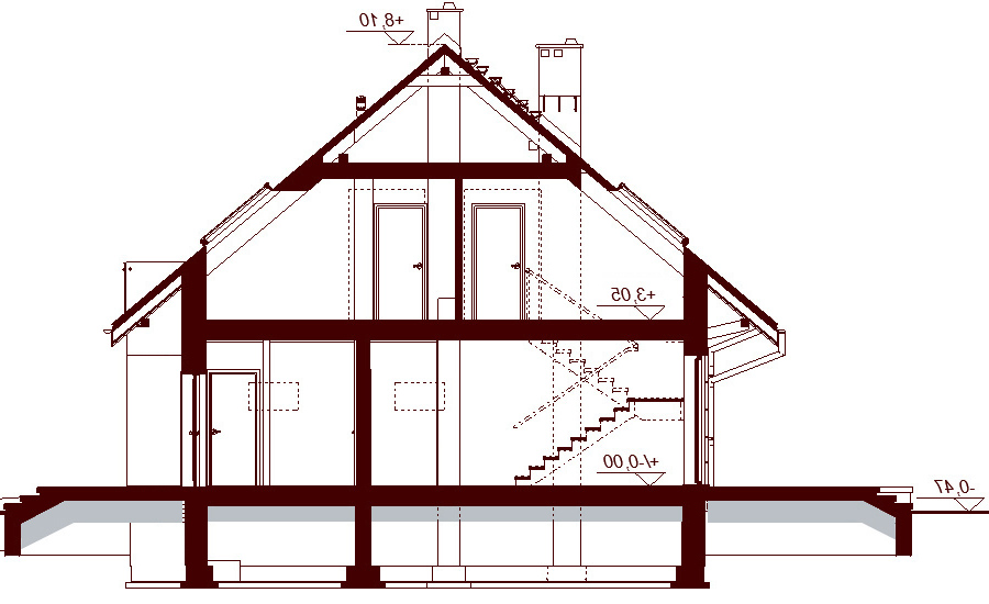 Ściany zewnętrzne i wewnętrzne nośne z bloczków Ytong, docieplone 20cm styropianu. Ścianki wewnętrze działowe na parterze z bloczków Silka, na poddaszu z płyt GK bądź murowane. Ściany fundamentowe z bloczków betonowych. Strop gęstożebrowy Teriva. Wszystkie technologie można zmienić na etapie adaptacji.